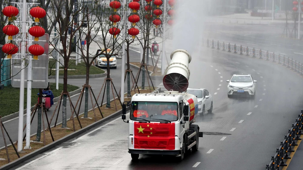 Khử trùng tại Vũ Hán. Ảnh: ABC News