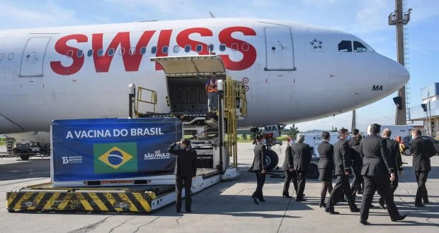 Một chuyến hàng vắc-xin ngừa COVID-19 mà Trung Quốc gửi đến Brazil. Ảnh: AFP