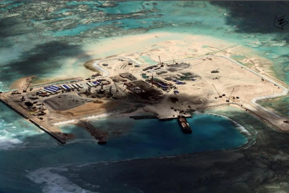 Hình ảnh vệ tinh cho thấy Trung Quốc cải tạo trái phép đá Châu Viên thuộc quần đảo Trường Sa của Việt Nam. Ảnh: AMTI
