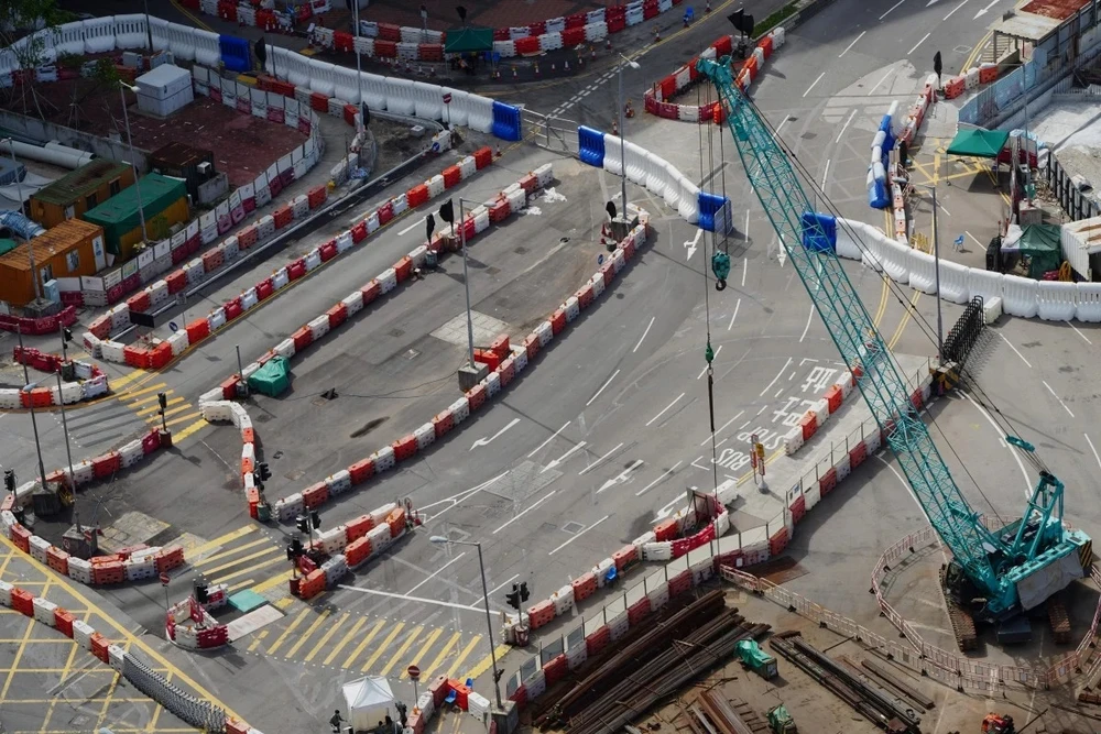 Quảng trường Kim Tử Kinh trước Trung tâm Hội nghị triển lãm ở quận Loan Tể bị phong tỏa. Ảnh: SCMP