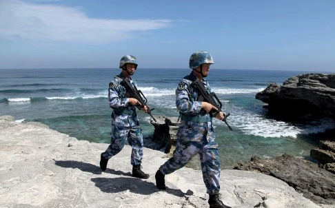 Các binh sĩ Quân Giải phóng Nhân dân Trung Quốc (PLA) tuần tra trái phép trên đảo Phú Lâm, thuộc quần đảo Hoàng Sa của Việt Nam vào ngày 29-1-2016. Ảnh: Reuters