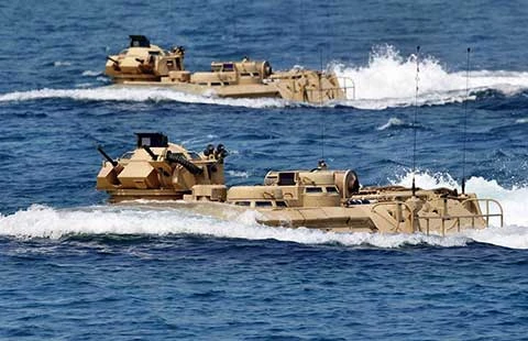 Lo ngại tình hình an ninh ở biển Đông, hải quân Mỹ tập trận với quân đội Philippines vào cuối tháng 4 vừa qua. Ảnh: AP