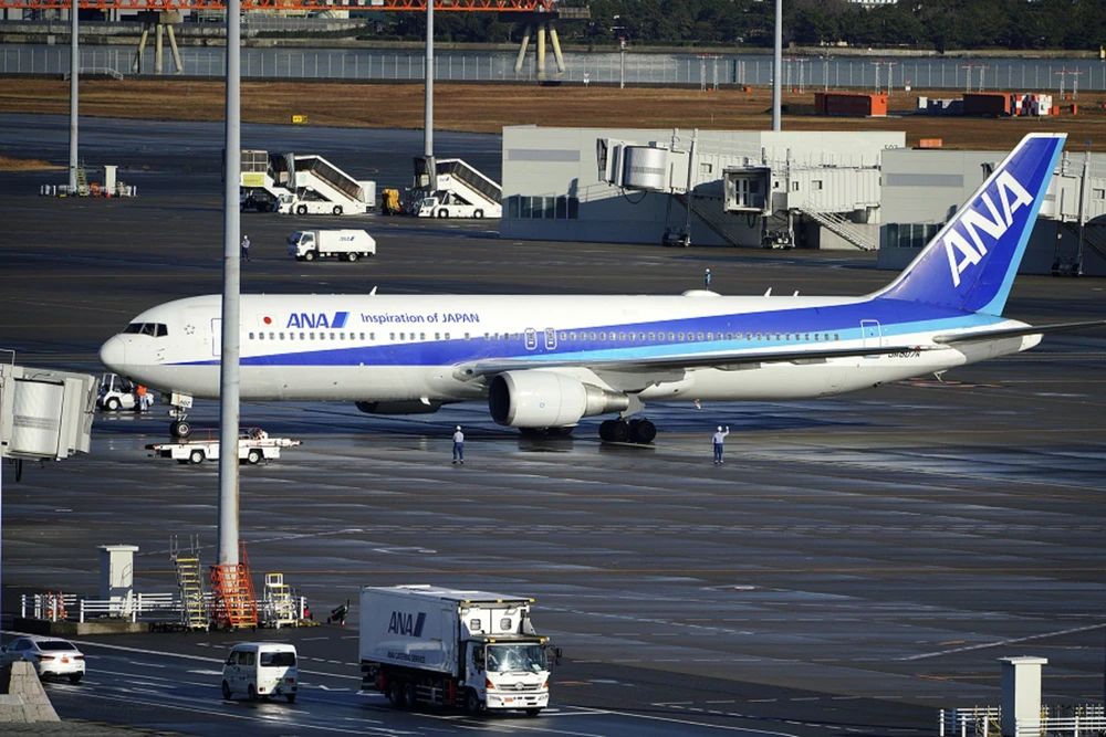 Máy bay của hãng ANA sơ tán công dân Nhật khỏi Vũ Hán ngày 29-1. Ảnh: AP