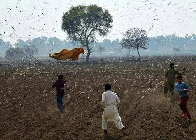 Dịch châu chấu, cùng với mưa trái mùa và tình trạng hạt giống chất lượng thấp đã tấn công những vụ mùa chính ở các khu vực sản xuất lớn nhất của Pakistan. Những côn trùng phá hoại này cũng đã di cư vào Ấn Độ.