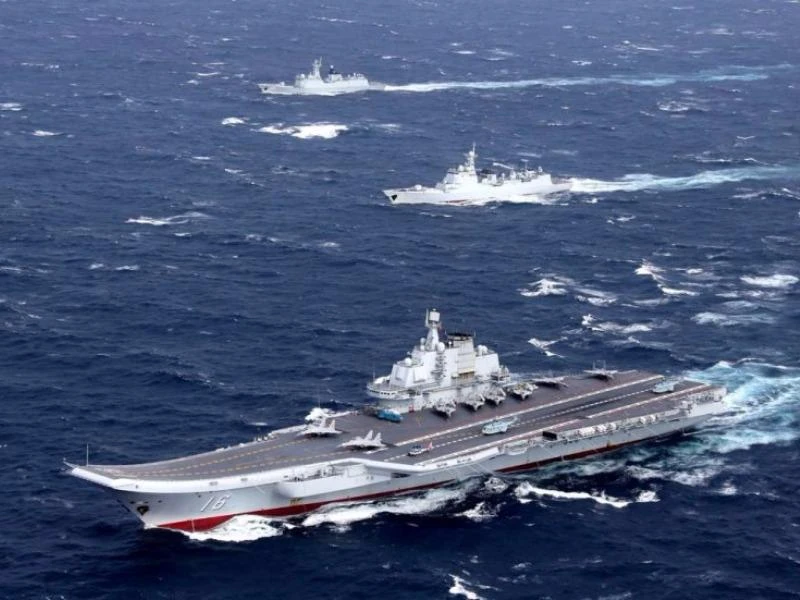 Tàu sân bay Liêu Ninh duy nhất của Trung Quốc cùng các tàu hộ tống tham gia một cuộc tập trận. Ảnh: REUTERS