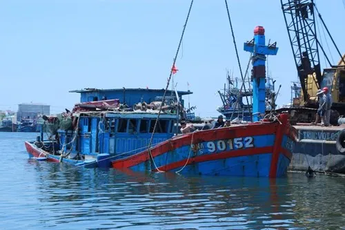 Trục vớt tàu cá bị Trung Quốc đâm chìm. Ảnh: Lê Phi