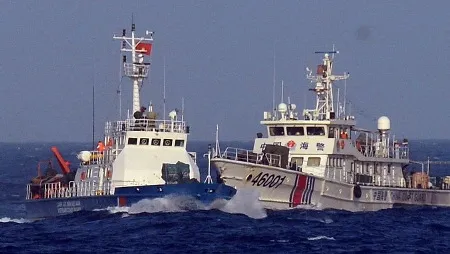 Tàu cảnh sát biển của Việt Nam bị tàu Trung Quốc cản đường. Ảnh tư liệu