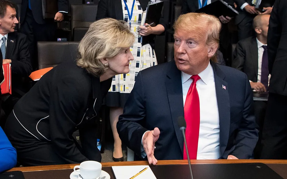 Bà Kay Bailey Hutchison trao đổi với Tổng thống Donald Trump trong một cuộc họp của NATO. Ảnh: TEXASMONTHLY/AP