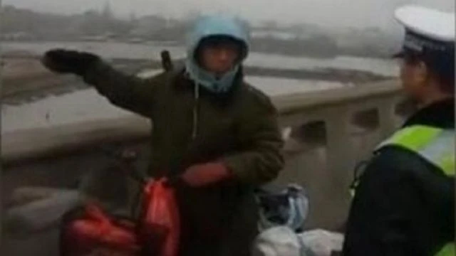 Để về quê ăn Tết, người đàn ông Trung Quốc này đã đạp xe lạc tới 500km trước khi bị cảnh sát giao thông bắt lại. Ảnh: Nhân dân Nhật báo.
