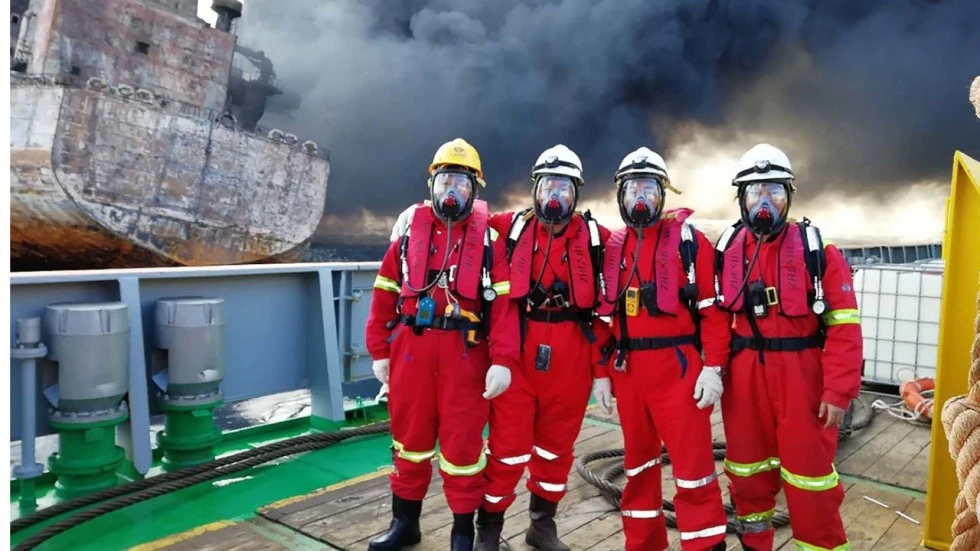 Trung Quốc điều thợ lặn biển sâu tiếp cận tàu chở dầu Iran vốn phát nổ và chìm xuống biển Hoa Đông hôm 14-1. Ảnh: SCMP