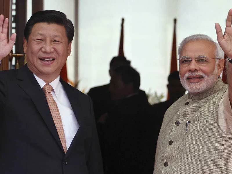Chủ tịch Trung Quốc Tập Cận Bình (trái) và Thủ tướng Ấn Độ Narendra Modi trong chuyến thăm Ấn Độ của ông Tập hồi năm 2014. Ảnh: PRESS TRUST OF INDIA