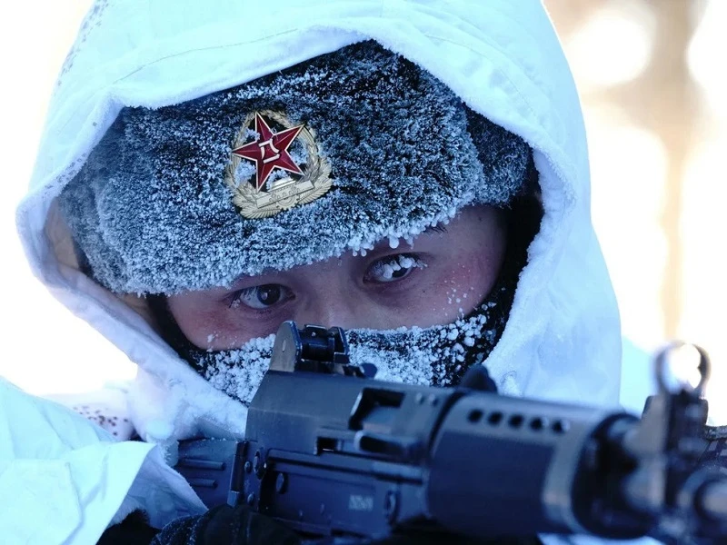 Ảnh minh họa - Một binh sĩ Trung Quốc tham gia huấn luyện dưới trời tuyết. Ảnh: TÂN HOA XÃ
