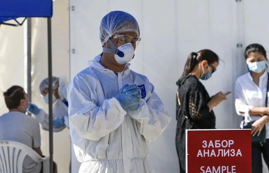 Chuyên viên y tế tại một cơ sở xét nghiệm virus Corona ở Kazakhstan. Ảnh: SCMP/REUTERS