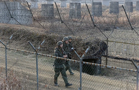 Quân đội Hàn Quốc tăng cường tuần tra ở khu vực giới tuyến. Ảnh: AP