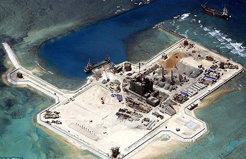 Đảo nhân tạo Trung Quốc xây trái phép trên biển Đông. Ảnh: EPA