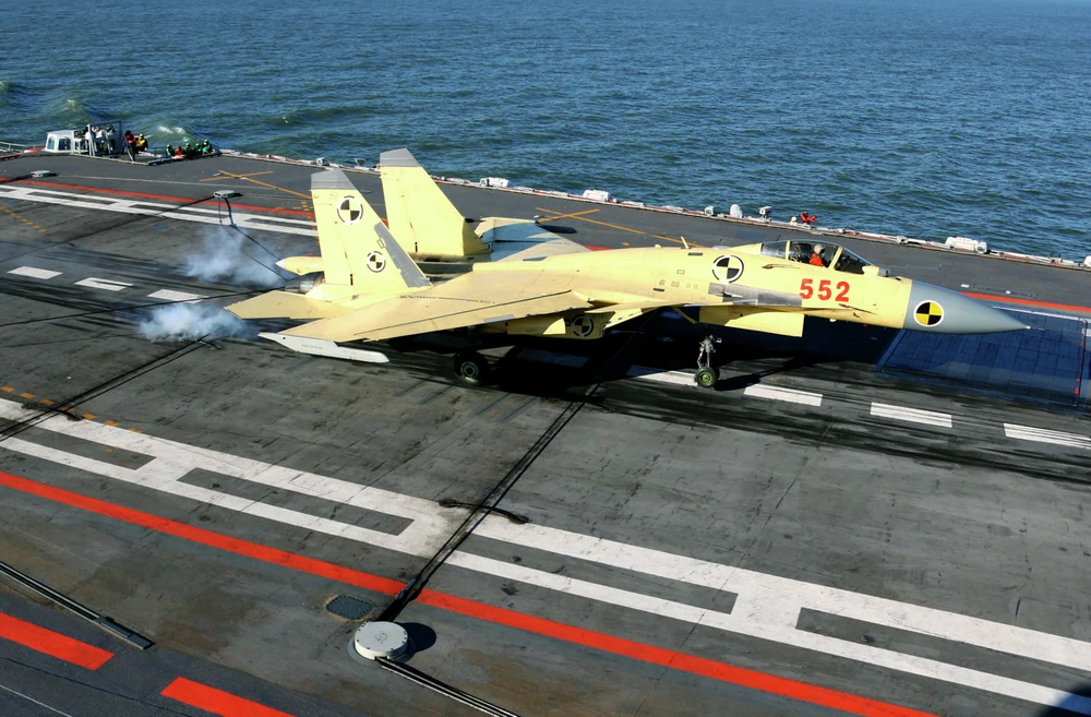 Chiến đấu cơ J-15 trên tàu sân bay Liêu Ninh ngày 25-11-2012 (Nguồn: AP Photo)