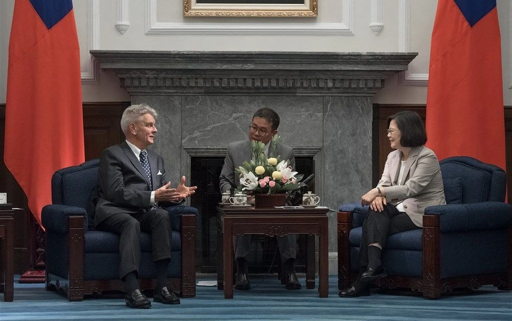 Thượng nghị sĩ Alain Richard trao đổi với nhà lãnh đạo Thái Anh Văn trong chuyến thăm năm 2018. Ảnh: FOCUS TAIWAN