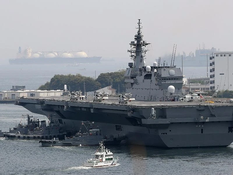 Tàu sân bay trực thăng Izumo của Lực lượng phòng vệ biển Nhật Bản (MSDF) hoạt động ở căn cứ Yokosuka hôm 1-5. Ảnh: GETTY