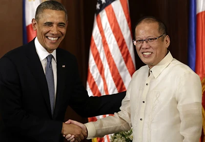 Tổng thống Barack Obama và Tổng thống Benigno Aquino bắt tay trong cuộc gặp ở Manila - Ảnh: Reuters