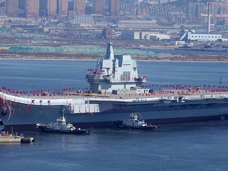Tàu sân bay tự đóng đầu tiên của Trung Quốc Type 001A mang tên Sơn Đông đã được hạ thủy hôm 26-4. Ảnh: BUSINESS INSIDER