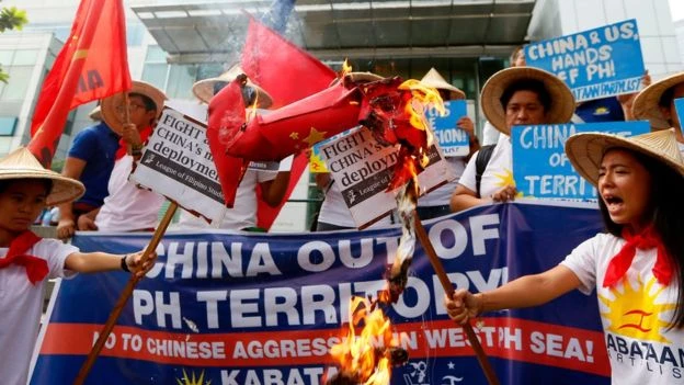 Người dân Philippines biểu tình phản đối Trung Quốc đưa tên lửa tới biển Đông. (Ảnh: BBC)