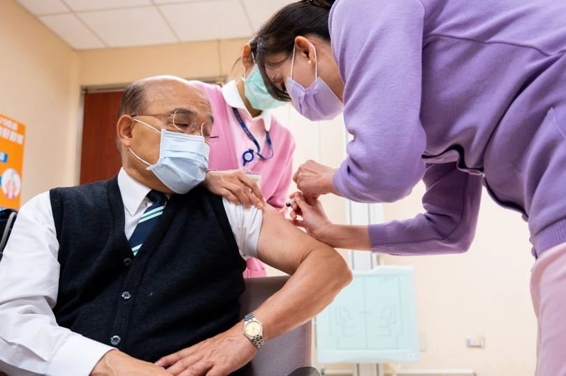 Lãnh đạo cơ quan hành chính Đài Loan, ông Tô Trinh Xương tiêm vaccine ngừa COVID-19 của hãng AstraZeneca hôm 22-3. Ảnh: TAIWAN TODAY