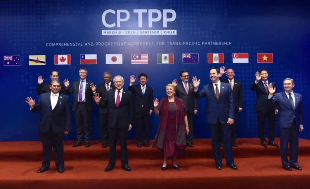 Đại diện các nước thành viên CPTPP tại lễ ký kết hiệp định ngày 8-3-2018 ở Santiago (Chile). Ảnh: BỘ NGOẠI GIAO CHILE/THE DIPLOMAT