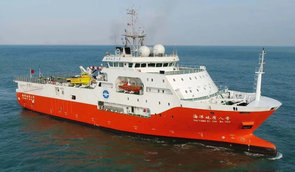 Tàu Địa chất hải dương 8, con tàu khảo sát từng xâm phạm Vùng đặc Quyền kinh tế Việt Nam năm 2019 với sự trợ giúp của lực lượng hải cảnh Trung Quốc. Ảnh: SCMP/WEIBO