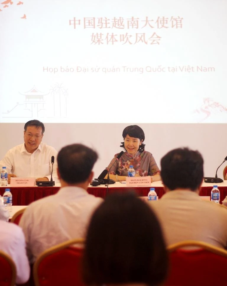 Bà Doãn Hải Hồng – Đại biện lâm thời của Trung Quốc tại Việt Nam trả lời câu hỏi của báo chí.