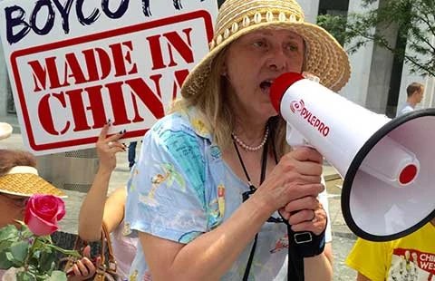 Ngày 12-6 tại Manhattan, kiều dân Philippines tại Mỹ kêu gọi tẩy chay hàng Trung Quốc. Ảnh: INQUIRER