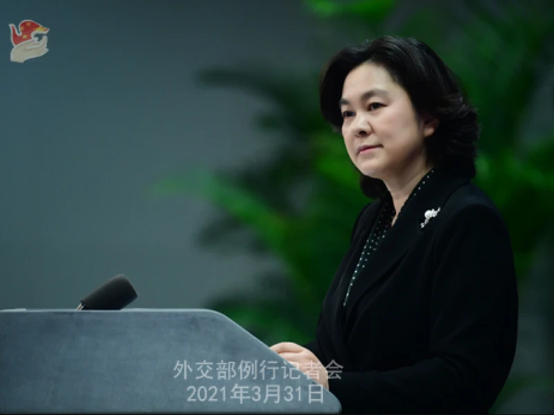 Người phát ngôn Bộ Ngoại giao Trung Quốc Hoa Xuân Oánh trong cuộc họp báo ngày 31-3. Ảnh: BỘ NGOẠI GIAO TRUNG QUỐC