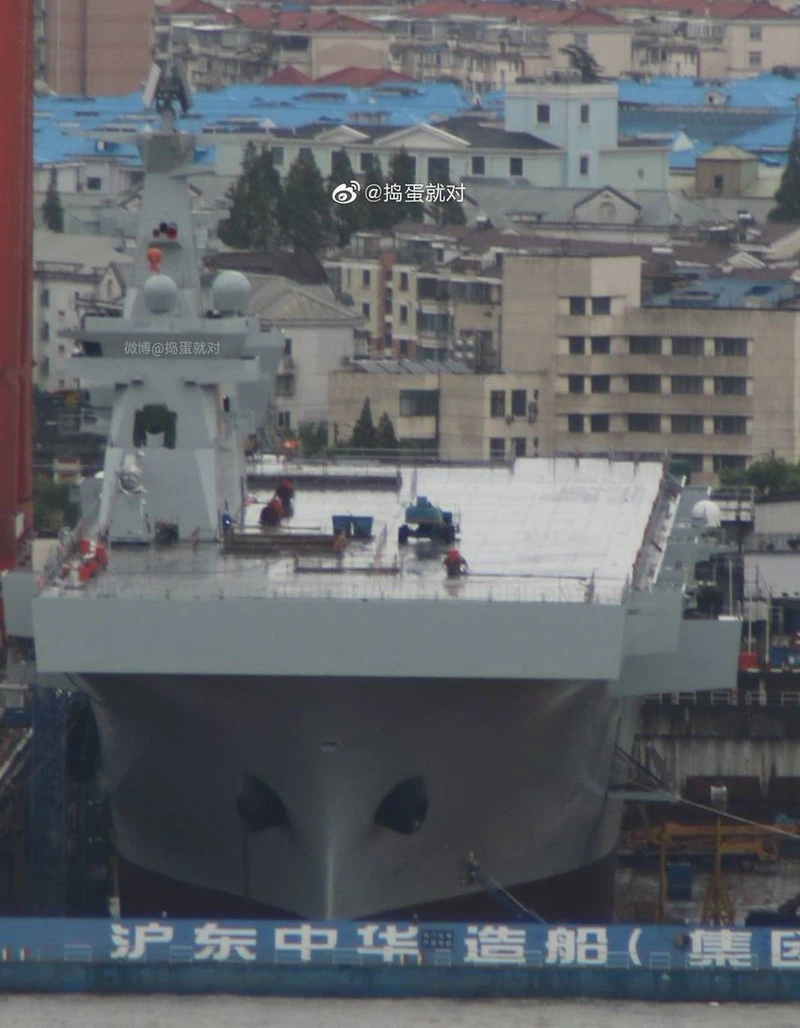 Tờ Global Times ghi nhận những người quan tâm quân sự Trung Quốc đã rất ngạc nhiên về tiến độ hoàn thành của con tàu. Mới tháng trước, hình ảnh tại xưởng đóng tàu cho thấy phần thượng tầng mới chỉ được đưa vào vị trí, với việc lắp đặt hệ thống điện, bao gồm cả radar, vẫn chưa được thi công.