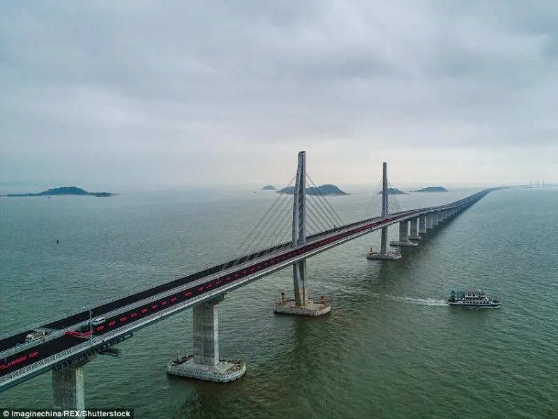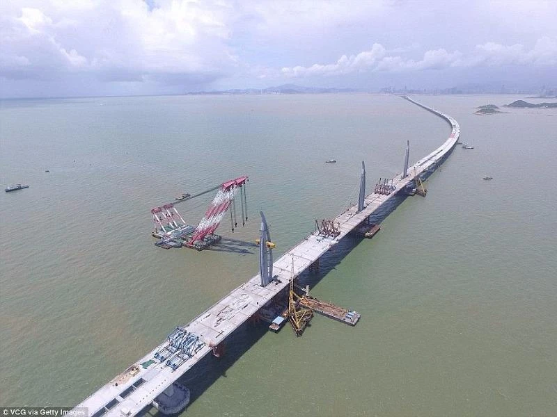 Theo tờ Dailymail (Anh), sau bảy năm trời thi công, cây cầu vượt biển dài nhất thế giới nối Hong Kong - Chu Hải - Macau sắp được hoàn tất. Sau khi được xây xong, cây cầu dài 55 km này sẽ giúp giảm thời gian di chuyển từ Hong Kong đến TP Chu Hải (tỉnh Quảng Đông) từ ba giờ xuống còn 30 phút.