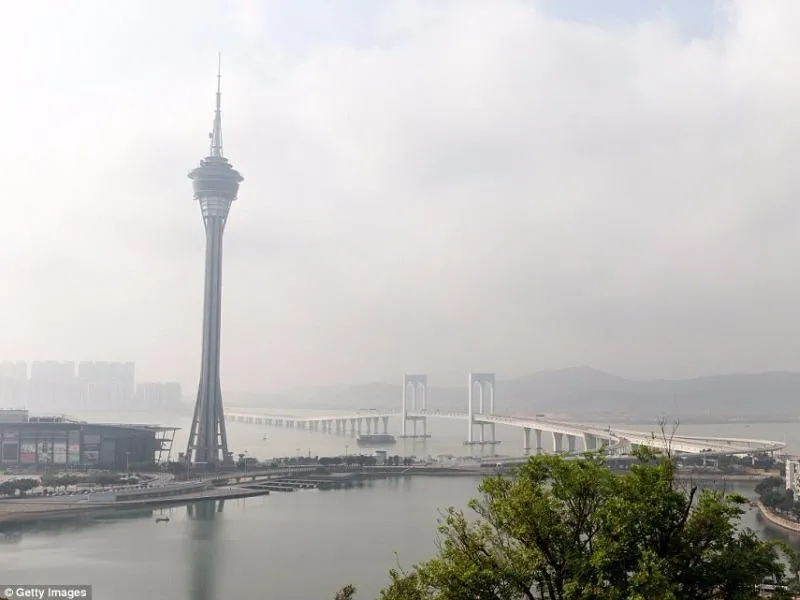 Cảnh một đoạn cầu vượt biển chạy ngang Tháp Macau. Ảnh: GETTY