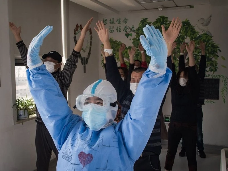 Nhân viên y tế tại một bệnh viện ở Vũ Hán hướng dẫn các bệnh nhân luyện tập dưỡng sinh để nâng cao sức khỏe. Ảnh: TÂN HOA XÃ