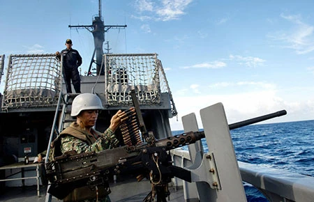 Binh sĩ Philippines tham gia tập trận chung với hải quân Mỹ trên biển Đông hôm 29-6. Ảnh: GETTY IMAGES.