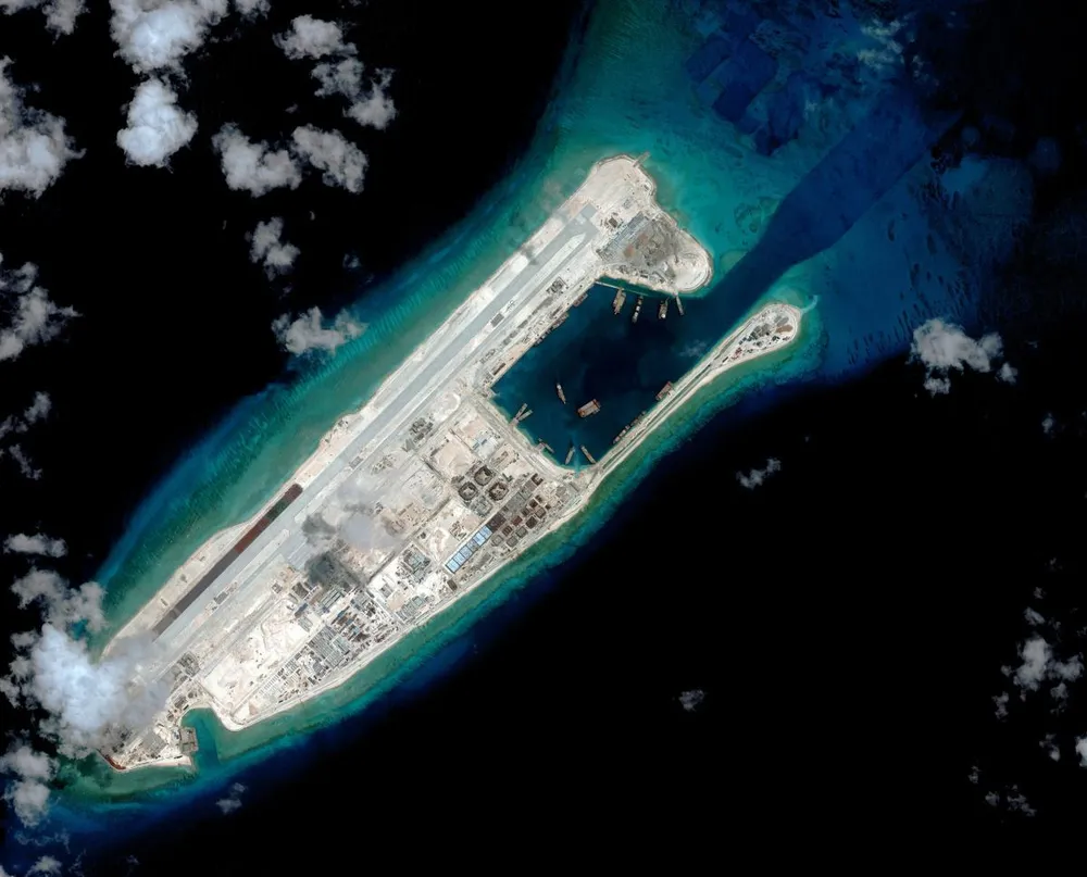 Hình ảnh vệ tinh chụp đá Chữ Thập từ trên không tháng 9-2015 cho thấy đã bị Trung Quốc cải tạo rất nhiều. (Ảnh: CSIS)