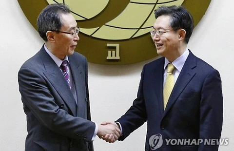 Ông Vũ Đại Vĩ (bên trái ảnh) tuyên bố như trên vào chiều 28-2 sau cuộc hội đàm với trưởng đoàn đàm phán sáu bên của Hàn Quốc Hwang Joon-kook (bên phải ảnh) tại Seoul. Theo hãng tin Yonhap (Hàn Quốc), ông Vũ Đại Vĩ đã khẳng định Bắc Kinh và Seoul sẽ cùng nỗ lực thiết lập hòa bình trên bán đảo Triều Tiên.