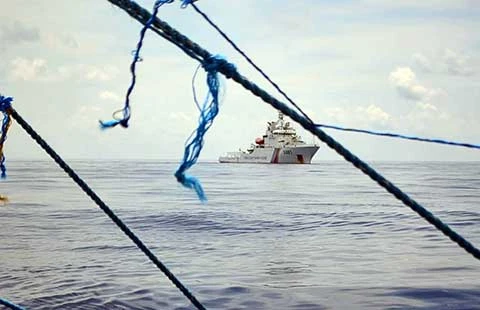 Tàu cảnh sát biển Trung Quốc áp sát tàu cá Philippines tại bãi cạn Scarborough. Ảnh: YOUTUBE