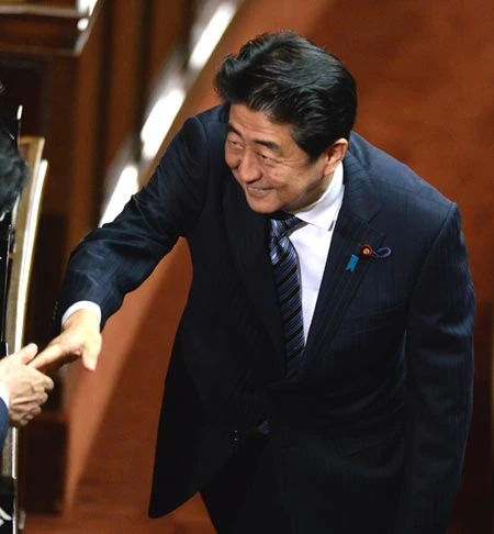 Thủ tướng Shinzo Abe bắt tay với các quan chức tại Hạ viện ở Tokyo ngày 24-12-2014