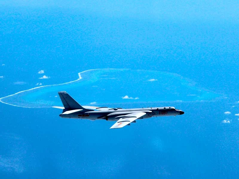 Hai ngày sau khi có phán quyết trọng tài, Trung Quốc điều máy bay ném bom H-6K đến thị uy trên bãi cạn Scarborough. Ảnh: THX