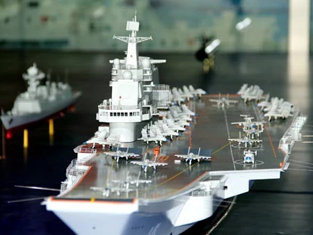 Mô hình tàu sân bay Liêu Ninh tỉ lệ 1:200, đặt tại Công viên Triển lãm Quốc phòng Nam Kinh.