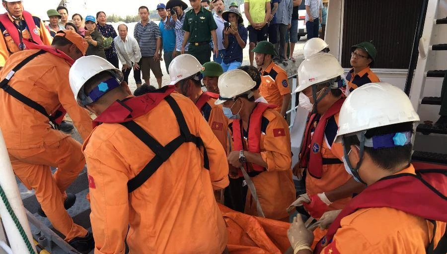 Chiều 30- 6, tàu SAR 411 của Trung tâm phối hợp tìm kiếm cứu nạn Hàng hải Việt Nam đã đưa 2 thuyền viên cùng một thi thể nạn nhân vào cập cầu cảng Cửa Lò (thị xã Cửa Lò, Nghệ An) để bàn giao cho gia đình.