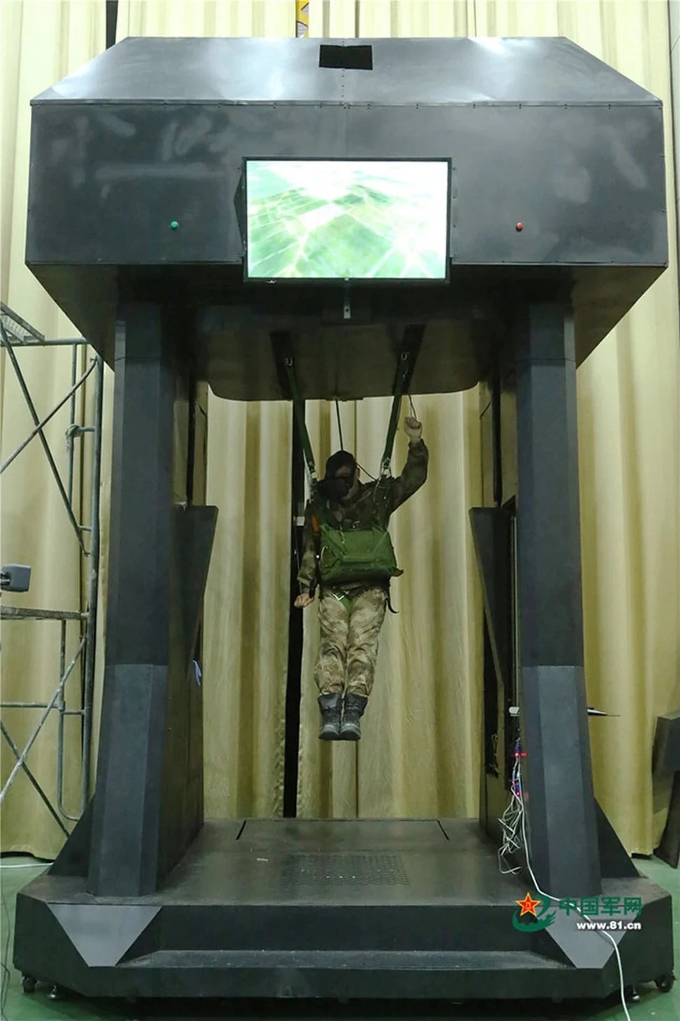 Lính nhảy dù Trung Quốc trải qua khóa huấn luyện nhảy dù sử dụng công nghệ thực tế ảo. Ảnh: PLA