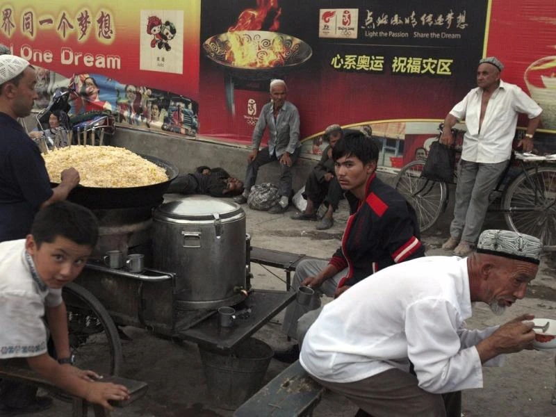 Cảnh bán thức ăn đường phố ở khu vực Kashgar của Tân Cương. Ảnh: AP