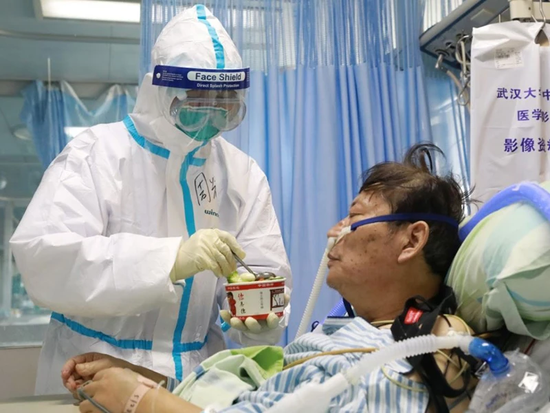 Chăm bệnh nhân nhiễm COVID-19 tại một bệnh viện ở Vũ Hán. Ảnh: SCMP