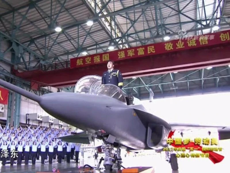 Mẫu tiêm kích siêu thanh L15-B được trình làng tại Nam Xương hôm 1-5. Ảnh: SINA