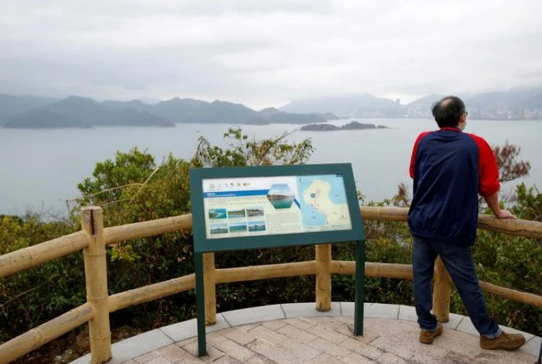 Ông Cheng Tsz-ho, cha của một trong những người bị bắt giữ, đứng ở Hong Kong nhìn về phía Thâm Quyến - nơi con ông bị giam giữ. Ảnh: REUTERS