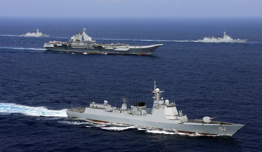 Nhóm tác chiến tàu sân bay Liêu Ninh đi qua khu vực giữa đảo Okinawa và đảo Miyako của Nhật ngày 11-4. Ảnh: REUTERS