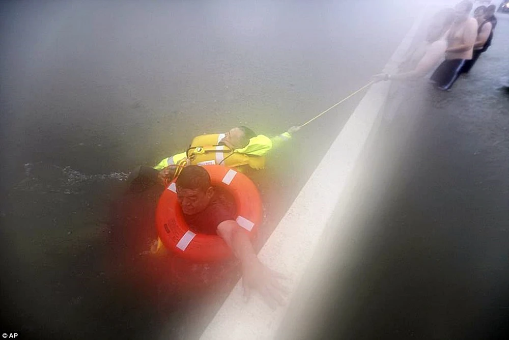 Cảnh sát Mỹ cứu hộ người bị nạn trong lũ.